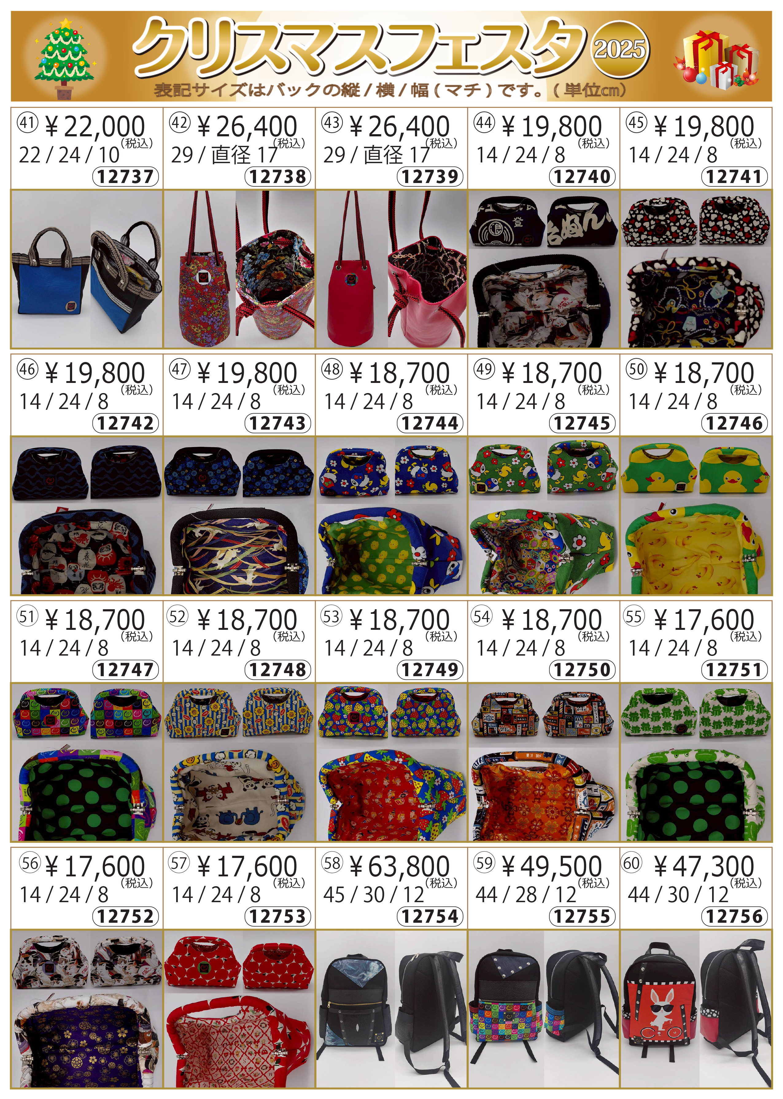 | 開催日 | 会場 | カタログ№ | 2025年12月12日~13日 | クリスマスフェスタ |