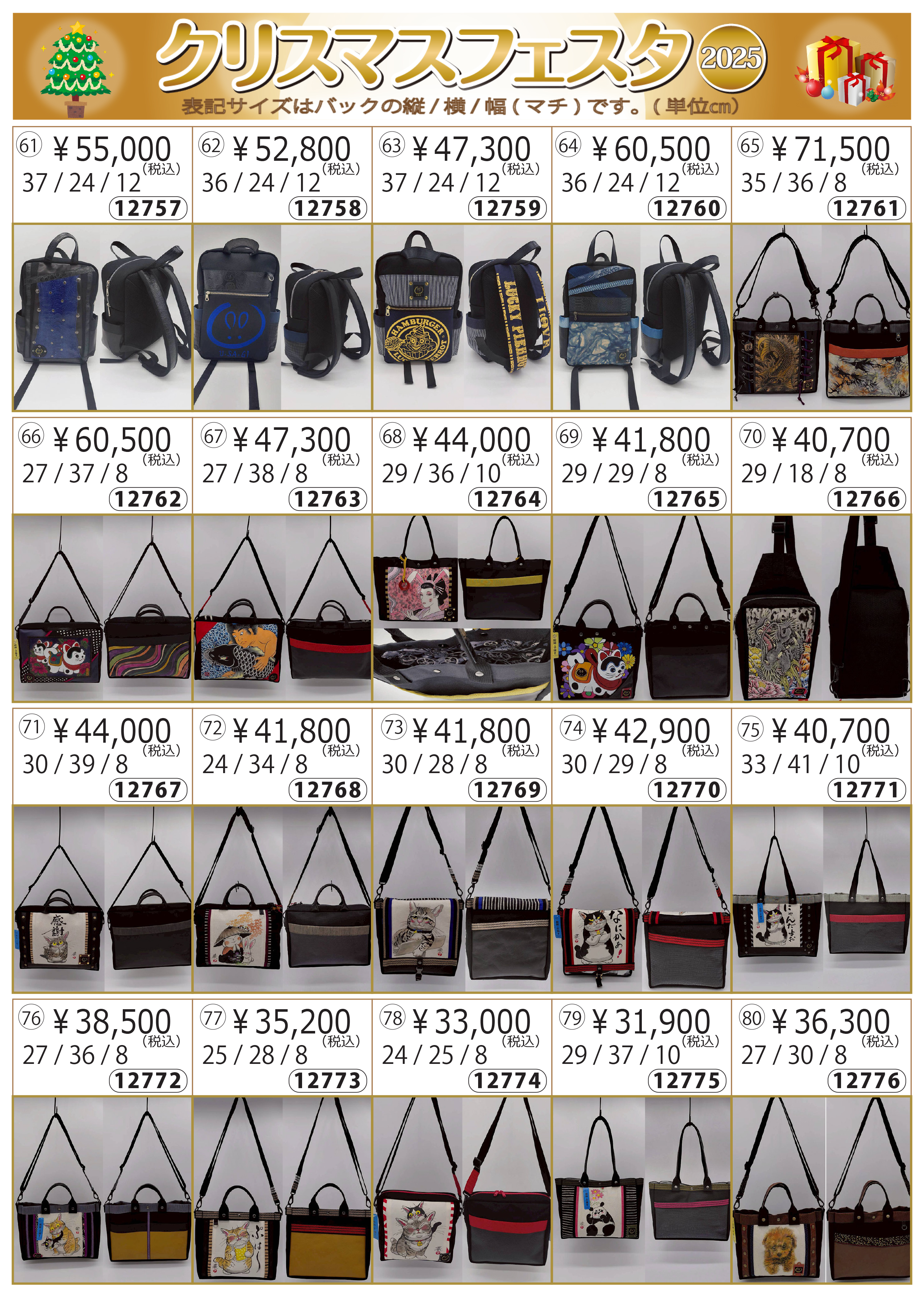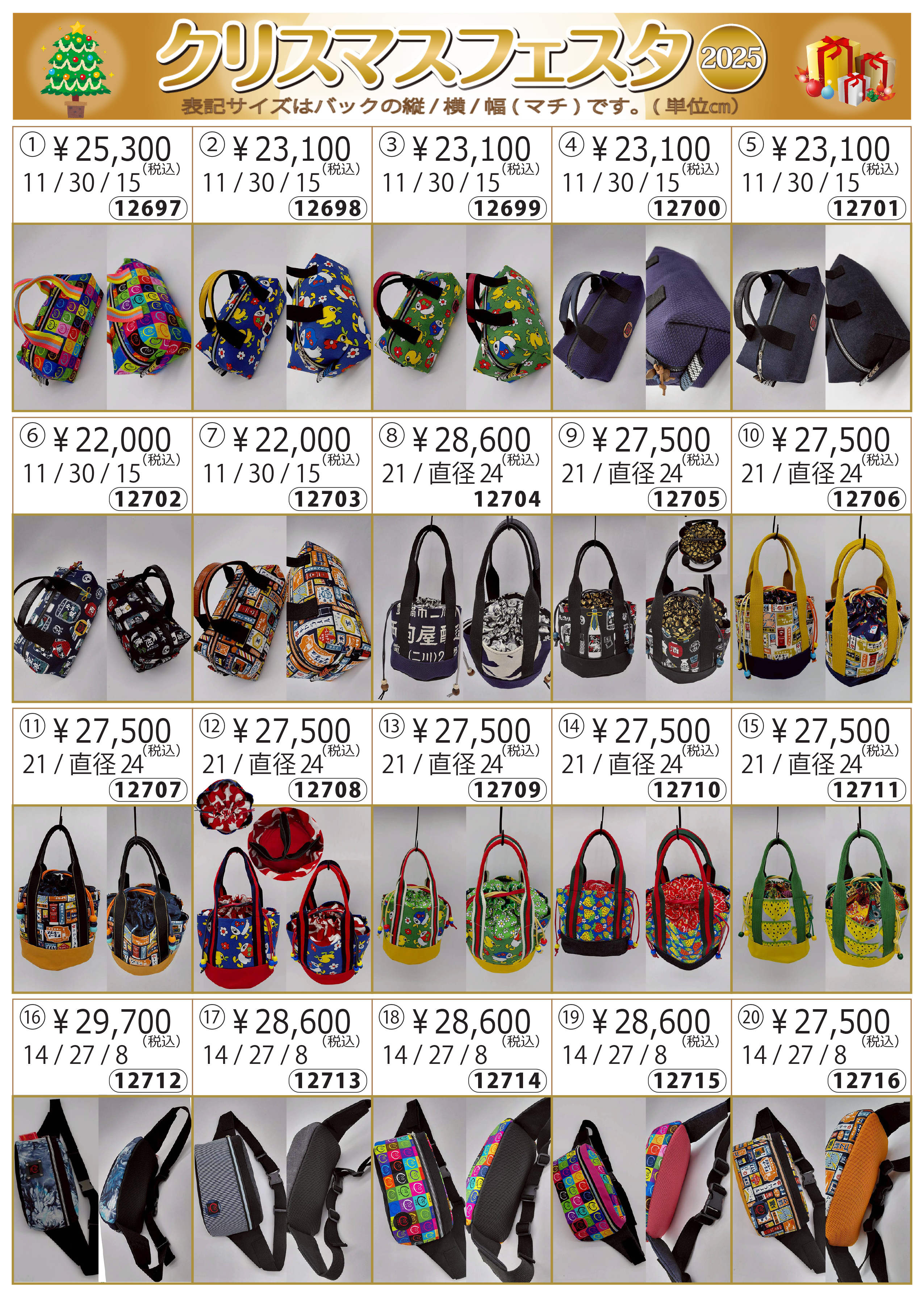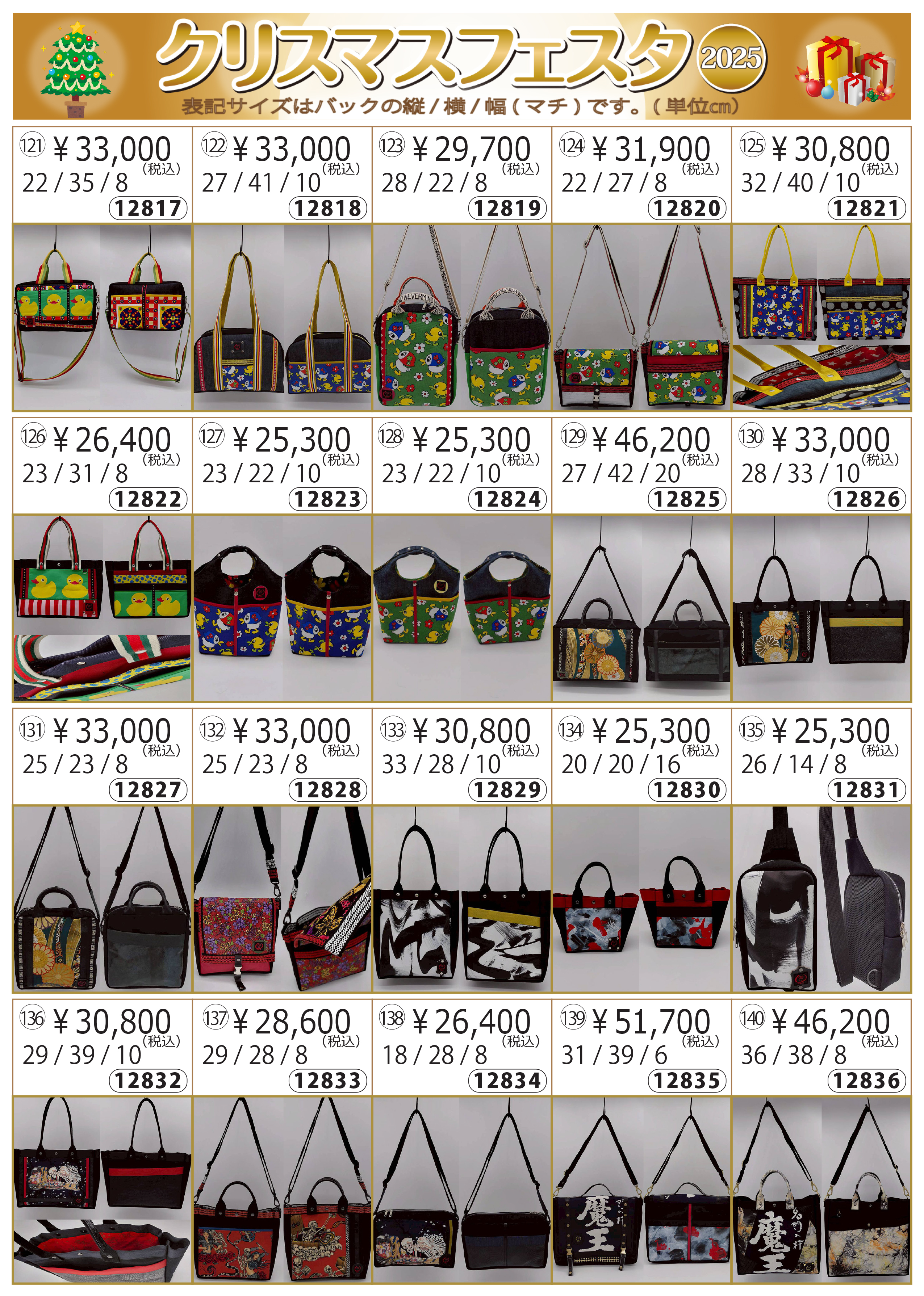 | 開催日 | 会場 | カタログ№ | 2025年12月12日~13日 | クリスマスフェスタ |